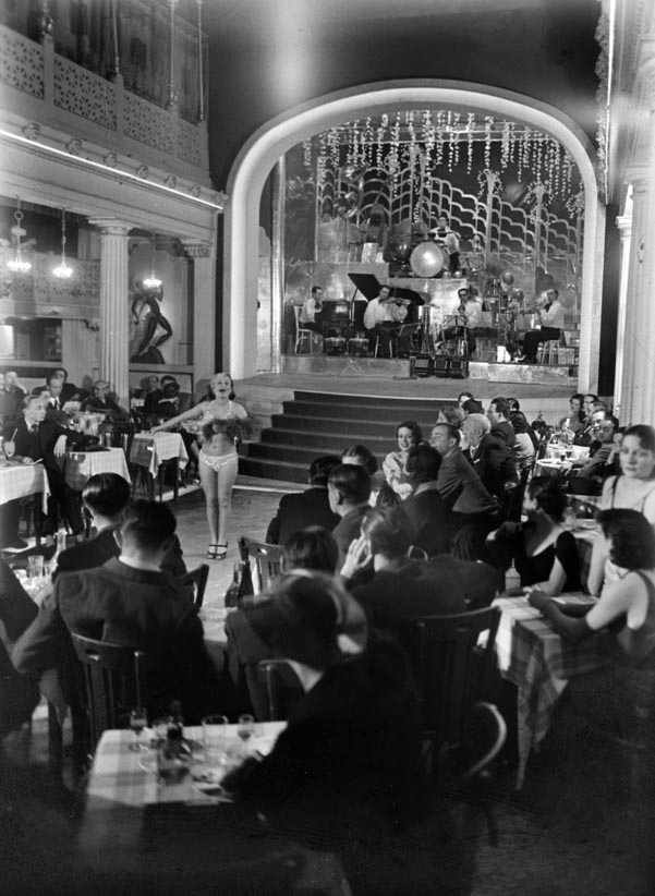 *1930's.- Actuació d'una artista sobre l'escenari i la pista de La Buena Sombra. (Foto: Casas i Galobardes / ANC).